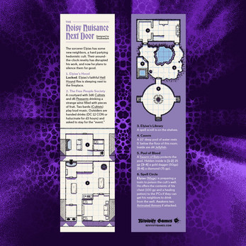The sorcerer Elyias has some new neighbors, a hard-partying, hedonistic cult. Their around-the-clock revelry has disrupted his work, and now he plans to silence them for good. Which side will you take?